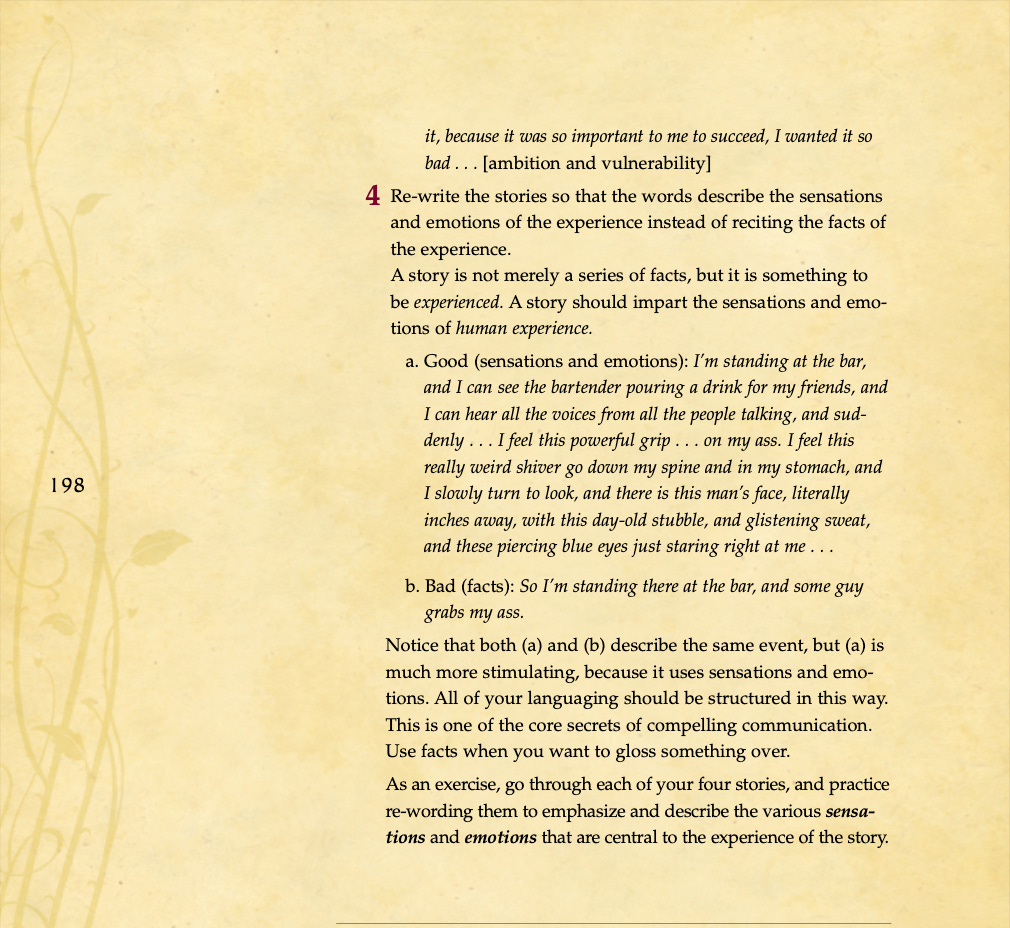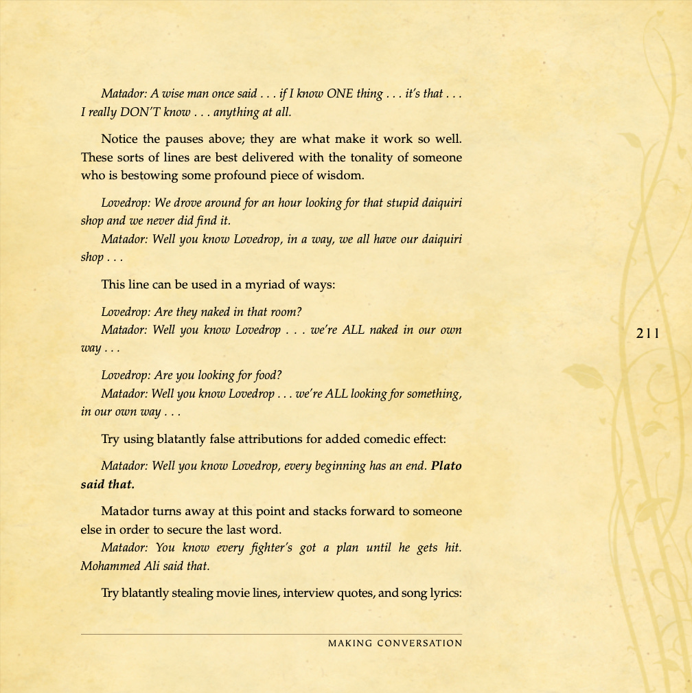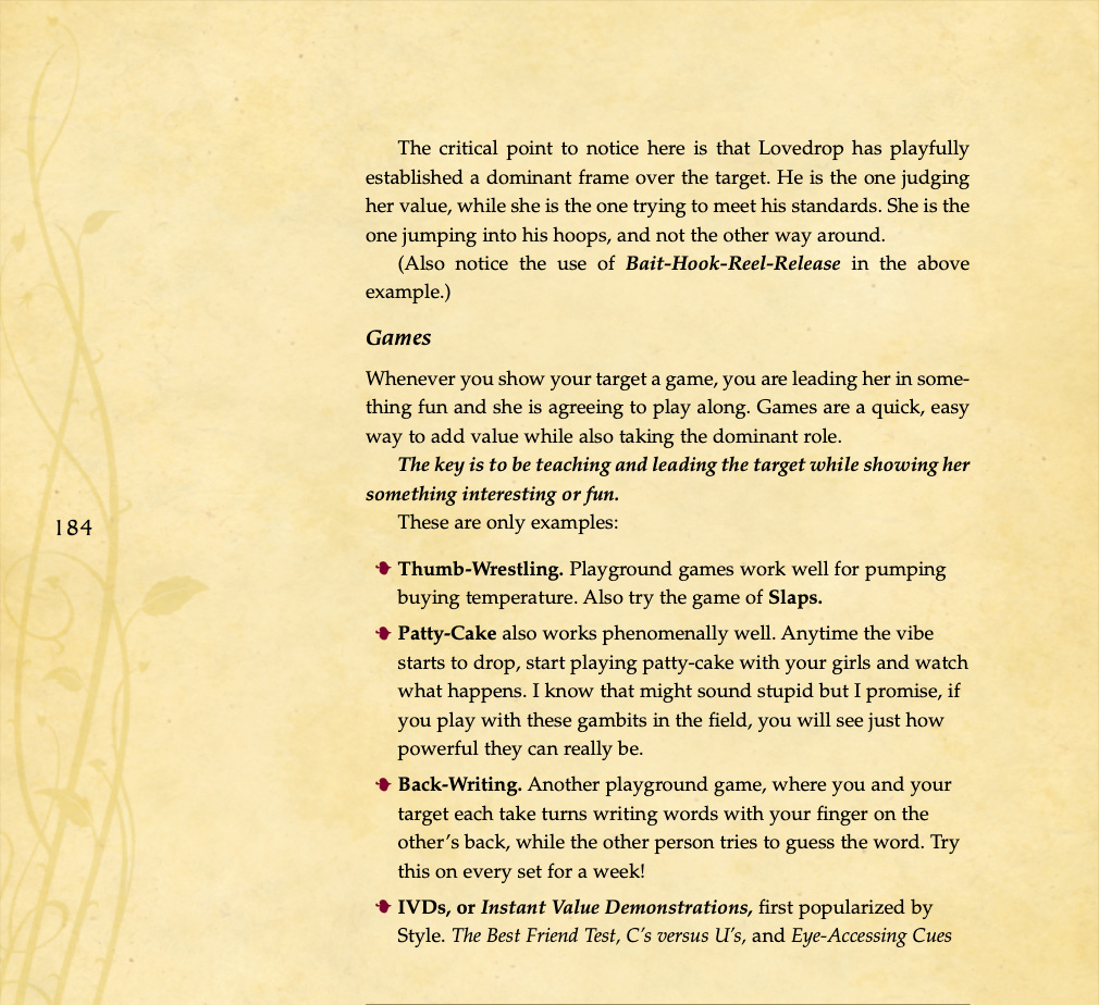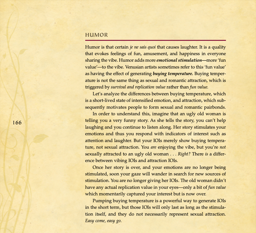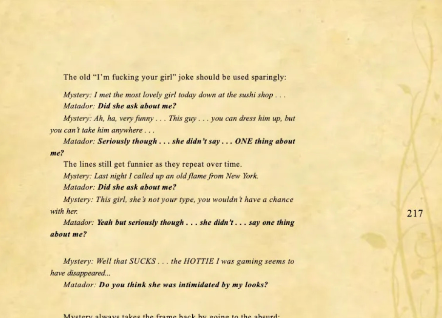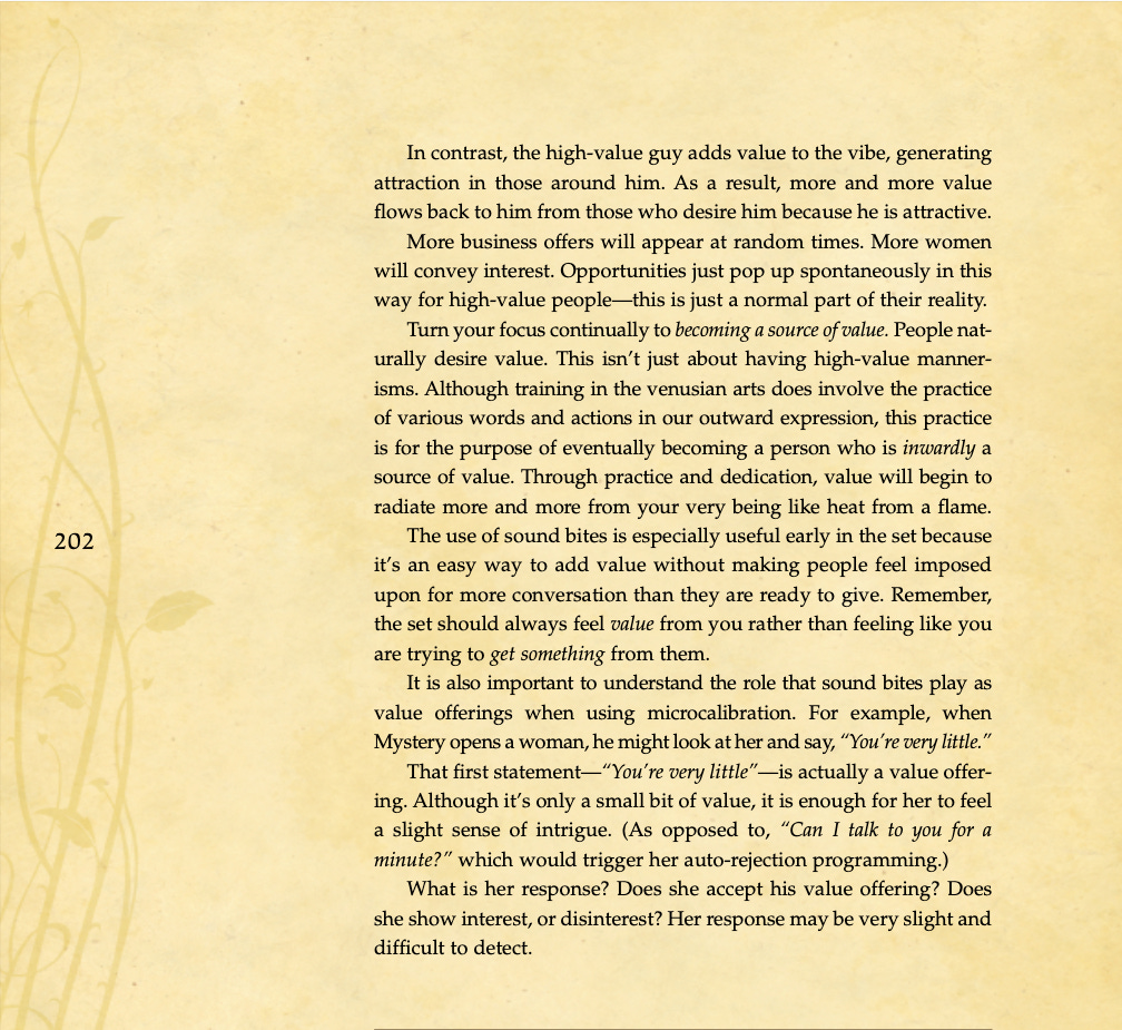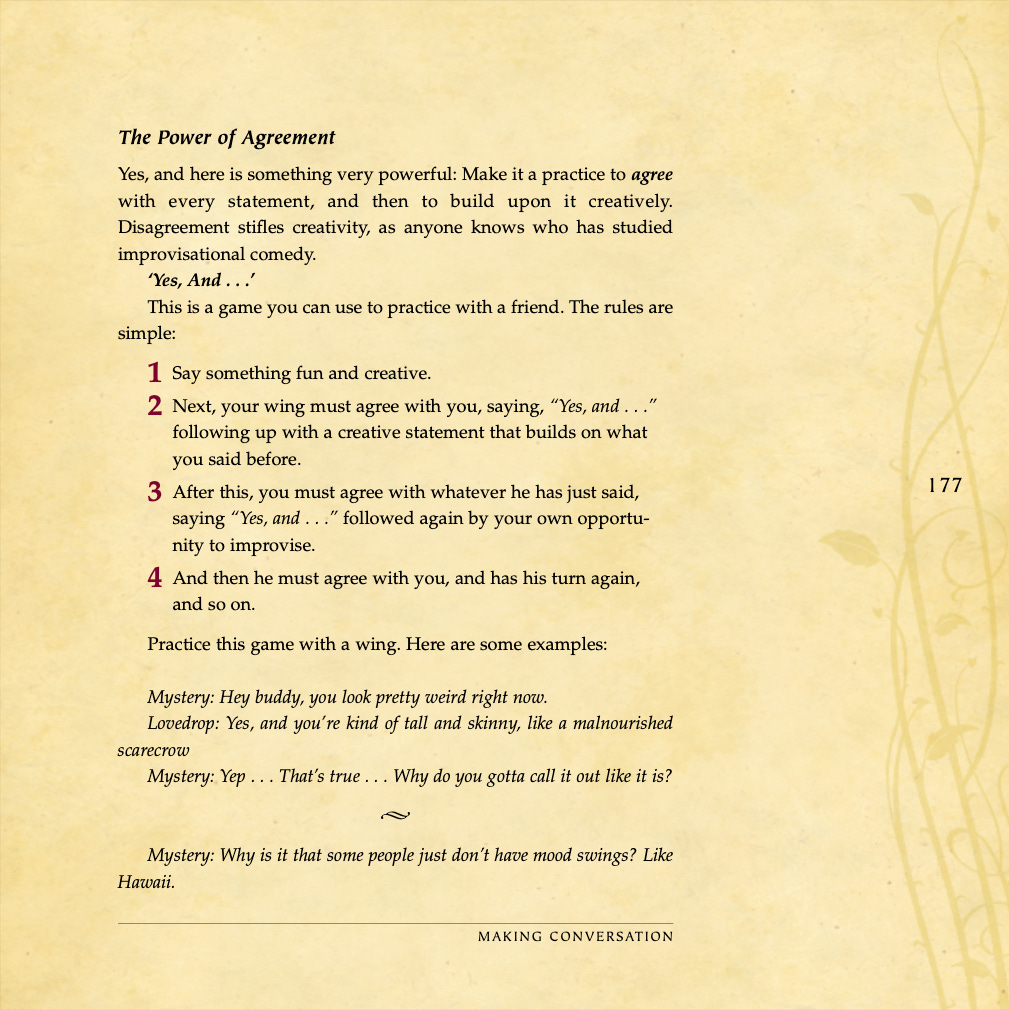 Conversational basics, curiosity and intrigue, humor, sexual tension, storytelling, sound bites, and frame control.