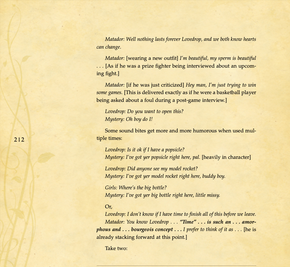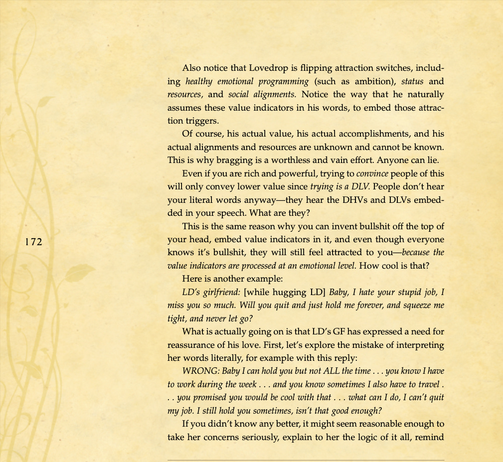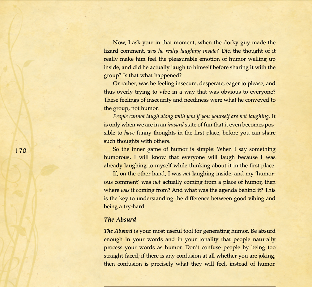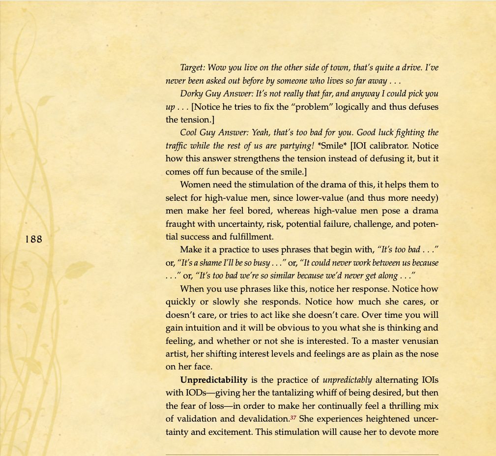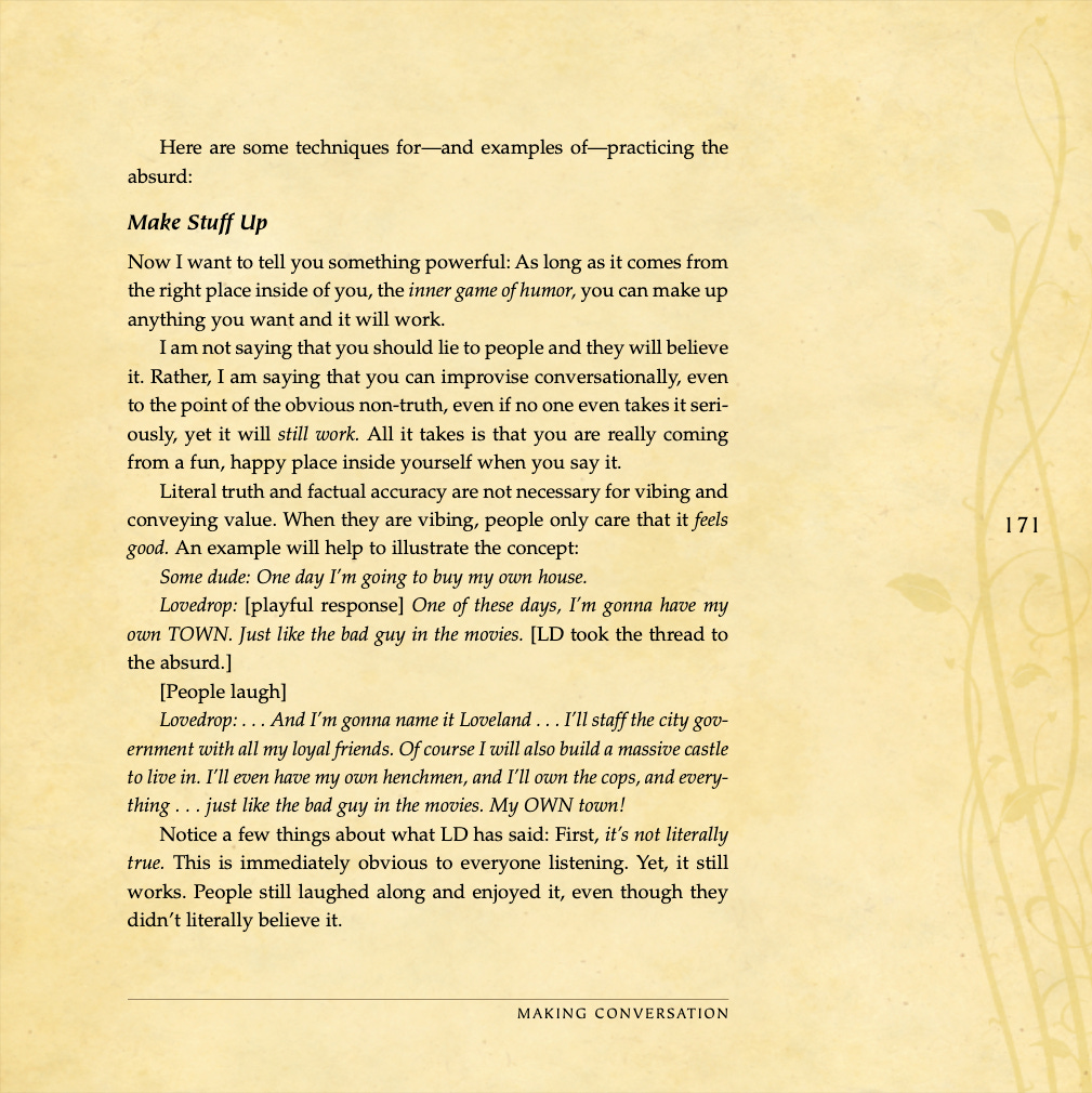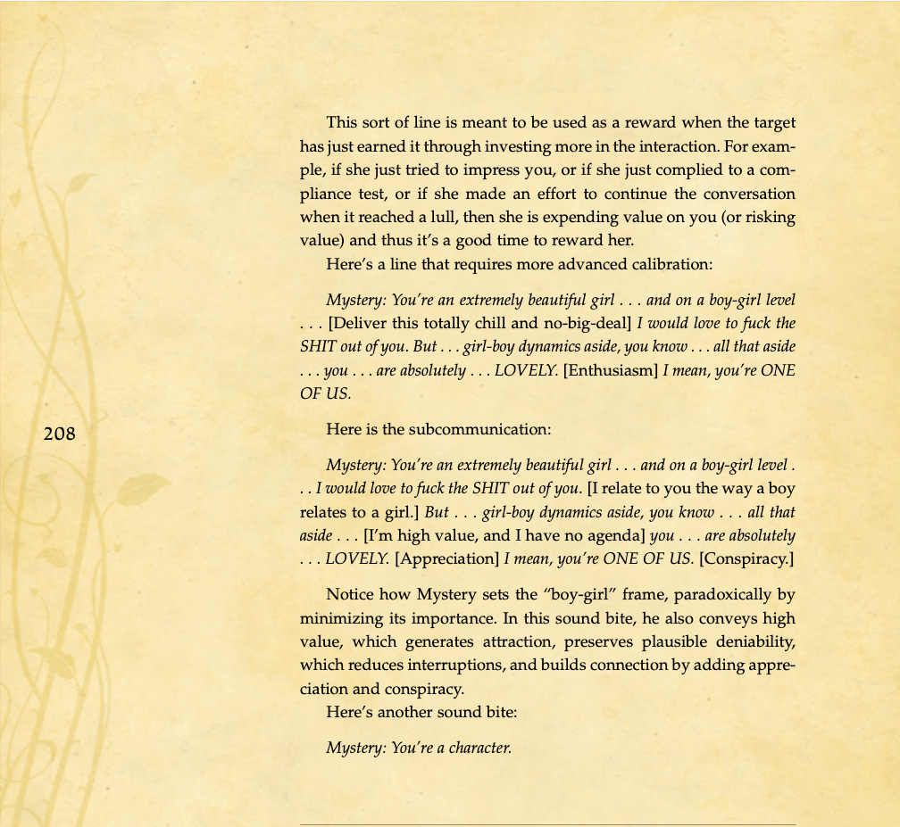 Conversational basics, curiosity and intrigue, humor, sexual tension, storytelling, sound bites, and frame control.